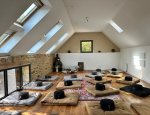 Nous avons une salle conviviale à manger pour environs 40 personnes. cette salle peut aussi servir comme salle de yoga.